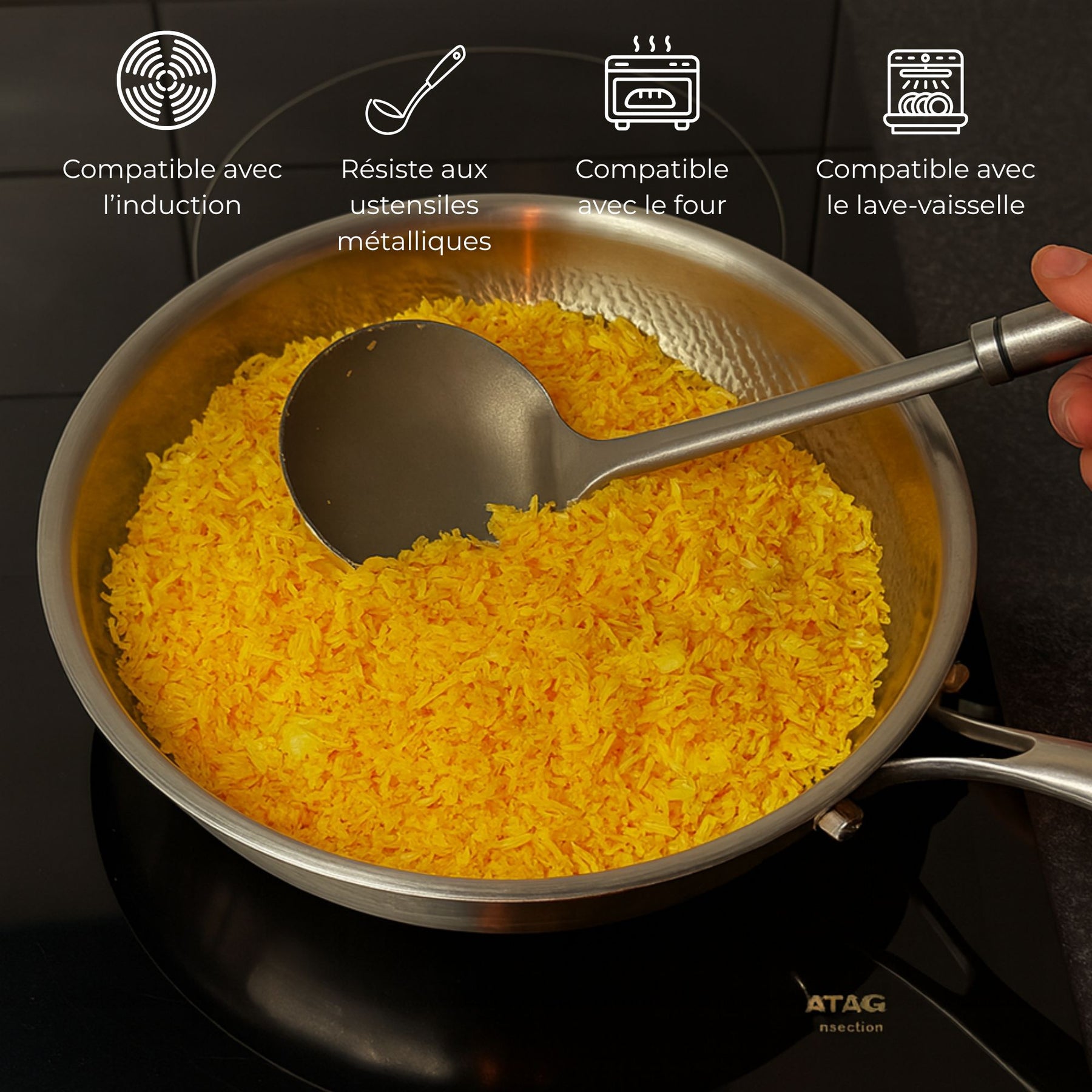 La pureté du titane là où elle compte le plus, alliée à une performance thermique exceptionnelle et une stabilité à long terme. Plus sain, plus résistant et plus performant que les ustensiles de cuisine traditionnels.